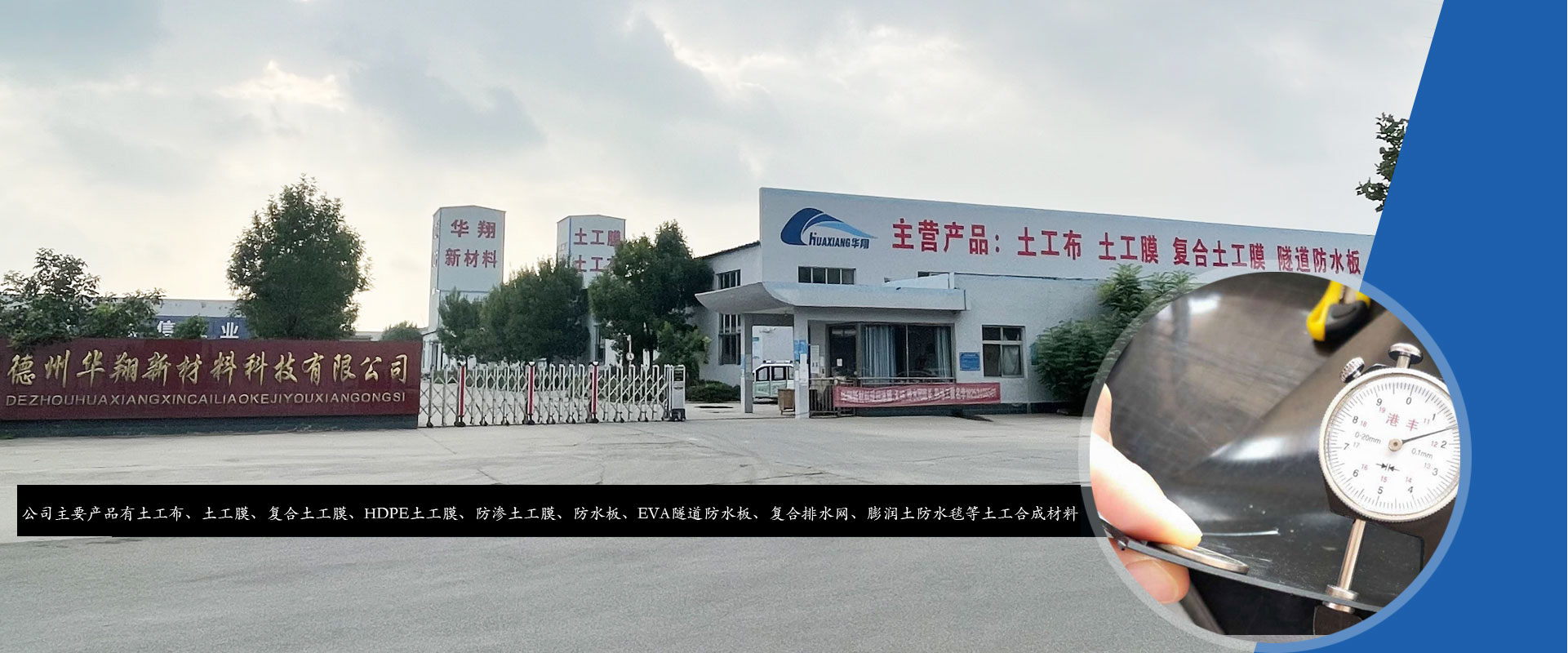 dezhouhuaxiangxincailiaokejiyouxiangongsiweiyuluxibeizhumingdelishimingcheng,xihandawenxuejiadongfangshuoguli-德州市。公司占地50畝,現有員工100人,總投資5068萬元。主要生產設備由德國、意大利引進,是一家集土工材料、地毯生產、科研、開發於一體的大型骨幹企業。 華(hua)翔(xiang)公(gong)司(si)始(shi)終(zhong)認(ren)為(wei)為(wei)顧(gu)客(ke)創(chuang)造(zao)價(jia)值(zhi),讓(rang)顧(gu)客(ke)的(de)工(gong)程(cheng)更(geng)優(you)秀(xiu),是(shi)我(wo)們(men)永(yong)遠(yuan)的(de)責(ze)任(ren)。公(gong)司(si)主(zhu)要(yao)產(chan)品(pin)有(you)地(di)毯(tan)、長(短)絲無紡布、HDPE土工膜、LDPE土工膜、EVA隧道防水板、土工膜、複...